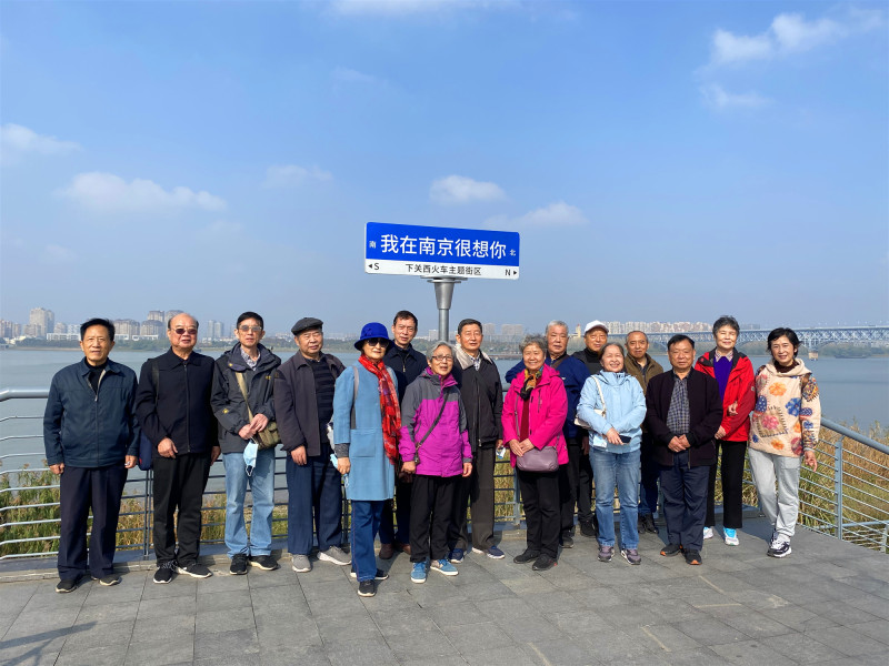 最后,党员们沿着江边步行至火车主题公园。这里不仅有蒸汽火车头,三节绿皮火车车厢,以及轨道、信号灯、具有民国特色的老式火车站候车厅和站台等辅助建筑设施,还有铁路文化艺术墙及南京铁路的历史沿革展示。在参观过程中,党员们深情回忆,畅谈心声,共话当今美好时代党的英明领导,分享学习党的二十大报告的感受,尽情欣赏周边美丽的景色和雄伟的建筑,深切的感受到时代的变迁和高品质生活环境。