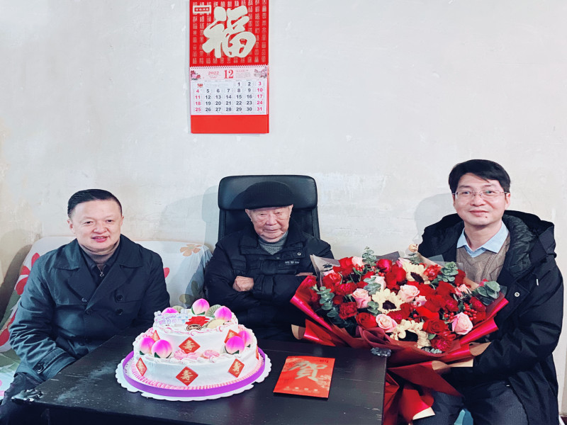 陈俊同志代表中心党委为石老献上鲜花和祝福,并送上生日蛋糕、慰问金,向石老家属询问老人身体状况和生活情况,对他们精心照料老人晚年生活表示感谢,对老人良好的身体和精神状态表示由衷的高兴,叮嘱他们疫情期间要注意自我防护、保重身体健康。陈俊同志指出,希望有关同志要积极配合做好“家庭医生”签约、适老化改造、居家养老照护服务等保障服务,让老人家度过健康、舒心、幸福的晚年。