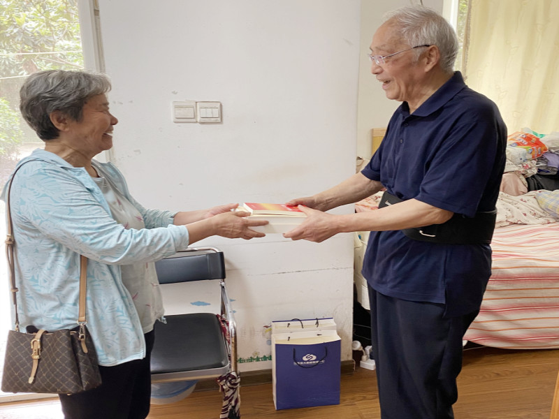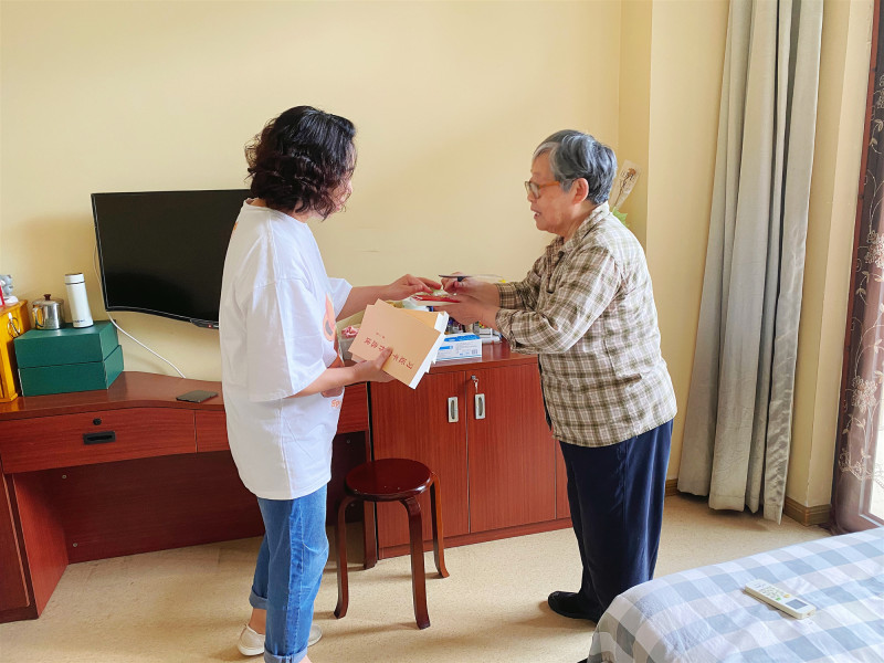 “这是单位老干部工作人员为我送精神食粮来了”80岁老党员索新云一边领路一边为护理院的邻居们高兴的介绍。