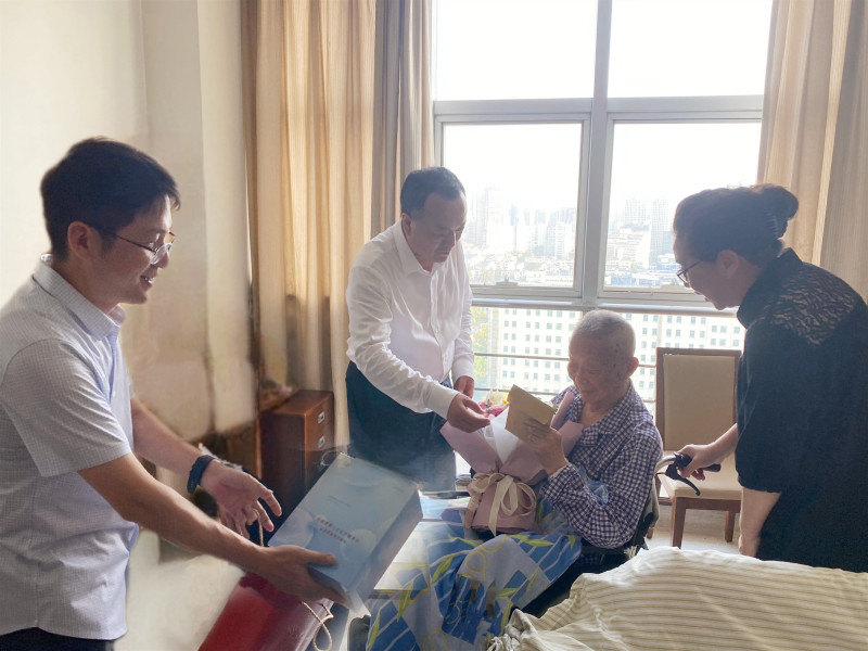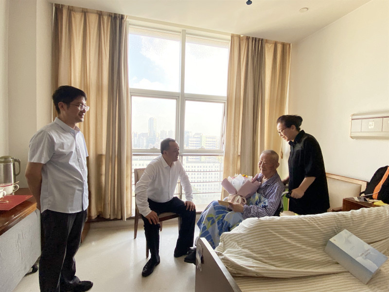 吴中东同志亲切地与石老交谈,并向石老家属了解老人身体状况和生活情况,叮嘱老干部处同志要积极做好服务保障工作,落实好离休干部待遇,并祝愿石老健康长寿!