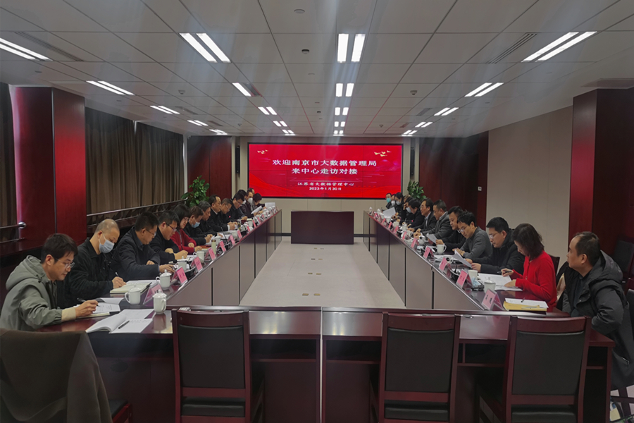 发布日期:2023-02-06 13:51 来源:中心动态 字体:[ 大 中 小 ] 1月30日下午,南京市大数据管理局党组书记、局长唐建荣一行来省大数据管理中心走访对接,中心党委书记、主任吴中东主持,中心领导班子成员和各处室负责人参加了座谈交流。